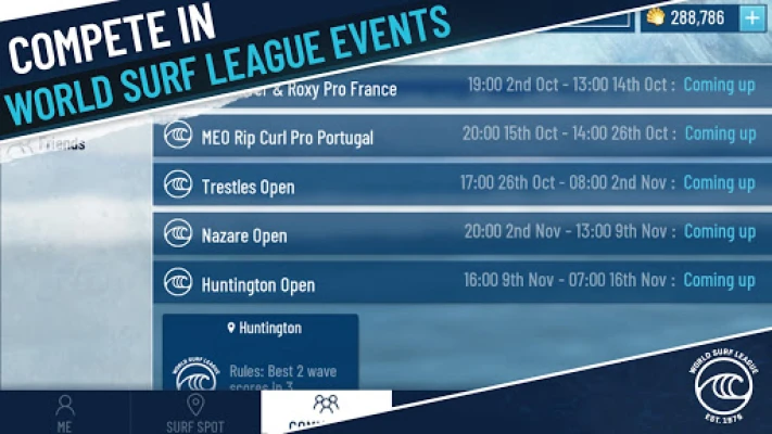 Are you ready for the big leagues? Test your skills via LIVE WSL competitions and compete against other players from around the world to see if you have what it takes to become a world champ!